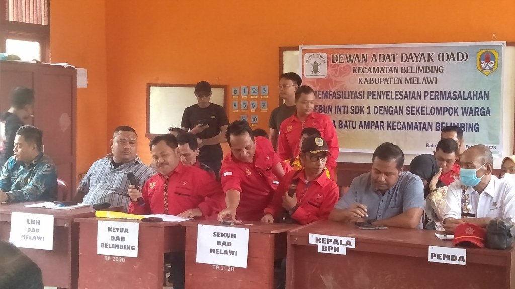 BerandaNews24 ,Kalbar-Melawi,DEWAN ADAT DAYAK (DAD) KECAMATAN BELIMBING KABUPATEN MELAWI Hadir turut memfasilitasi dalam Menegahi Pemersalahan Selama Ini Dipertanyakan oleh pihak mana pun Termasuk Sekelompok Warga Desa Batu Ampar Gafar Cs,kejelasan HGU Perusahan yang berada di wilayah Desa Mereka yakni PT.Sinar Dinamika Kapuas 1/Kalimantan Sanggar Pusaka Agro (02/02/2023)