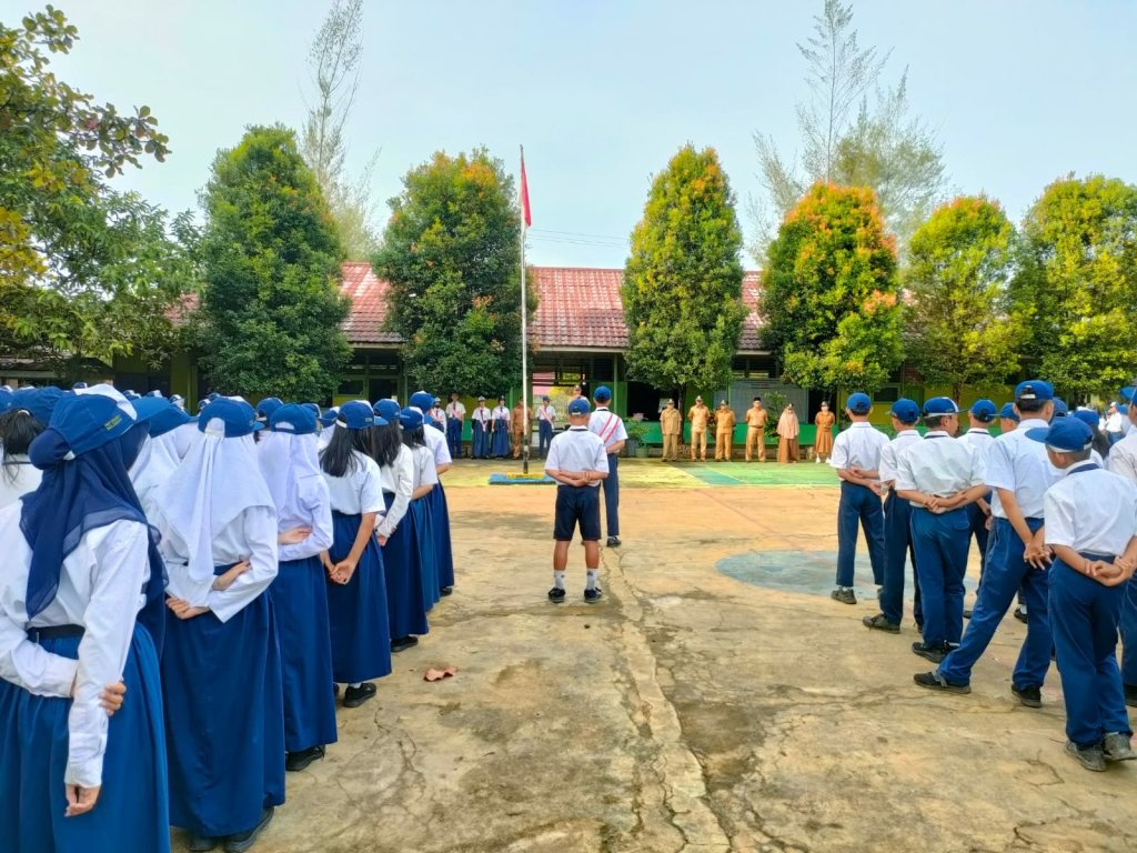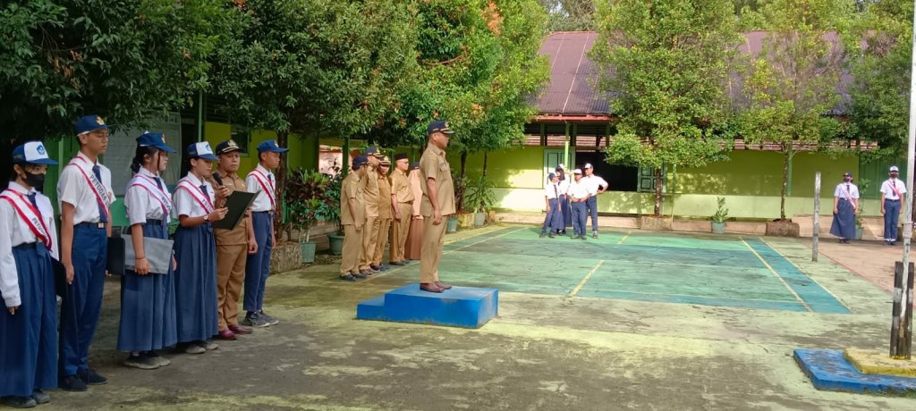 BerandaNews24,Kalbar-Melawi Bapak KARYANTO.SP.M.Si Selaku Seketaris Camat Belimbing bertindak sebagai pembina upacara di SMP N 1 Belimbing pada Senin (6/02/2023).