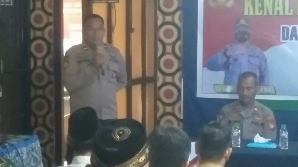 Sambutan dari Pejabat Lama AKP Nono Partoyuwono menyampaikan terima kasih atas kerjasama dan sinergitas selama menjabat sebagai Kapolsek belimbing.