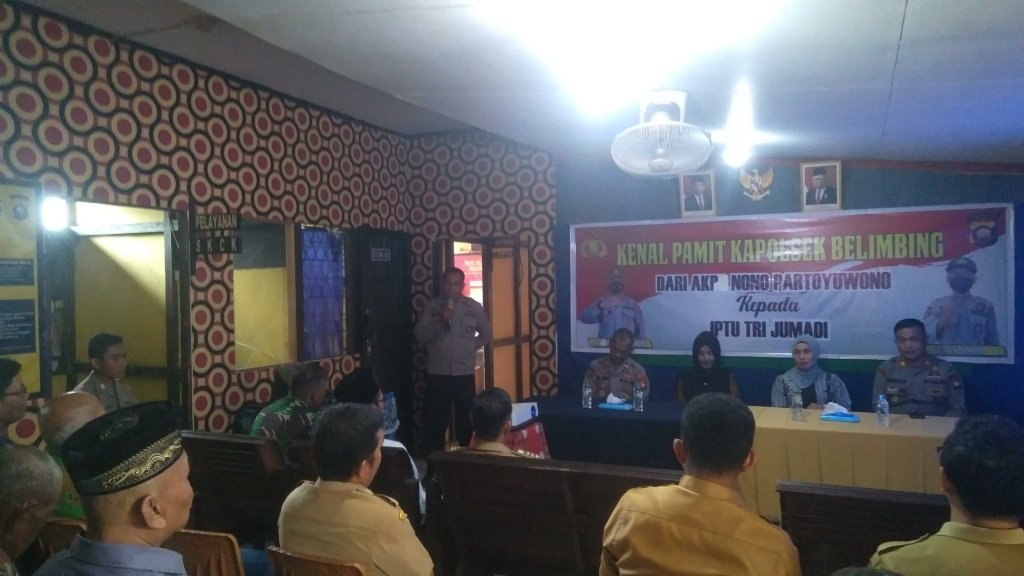BerandaNews24,Kalbar,Melawi- 07/02/2023 Kepolisian sektor Belimbing(Polsek)Mengelar acara Kenal Pamit kepala Polisi Sektor Belimbing dari Kapolsek Belimbing sebelumnya dijabat AKP Nono Partoyuwono kini dijabat oleh Iptu Tri Jumadi, selanjutnya AKP Nono Partoyuwono menjabat sebagai Kapolsek Dedai Polres Sintang,