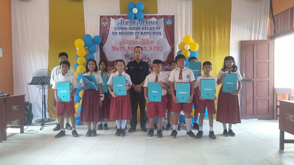 ” Untuk anak-anakku yang lulus tahun 2022 ini kalian harus melanjutkan pendidikan kejenjang SMP, kami guru-gurumu di SDN 27 Batu Buil akan terus memberikan dukungan dan motivasi serta mendoakan kalian semua.,(bu Hj.Kalimah,S.Pd.I) “imbaunya”