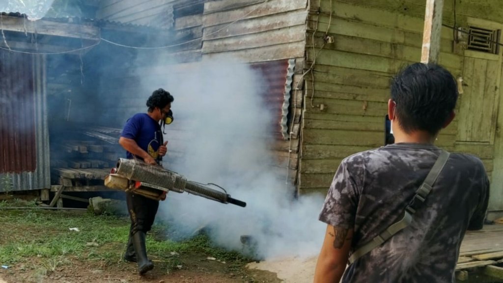 BerandaNews24,Kalbar,Melawi-PT.SDK 1/Kalimantan Sanggar Pusaka(KSP AGRO) wilayah kerja Kecematan Belimbing Kabupaten Melawi Prihatin dengan Merebaknya kasus Demam Berdarah (DBD) Di Wilayah Kecamatan Belimbing Khususnya,maka Pihak Perusahaan PT.SDK 1/KSP Agro dalam Peduli dan melakukan fogging guna mengantisipasi bahaya dari Penyebarya wabah tersebut.