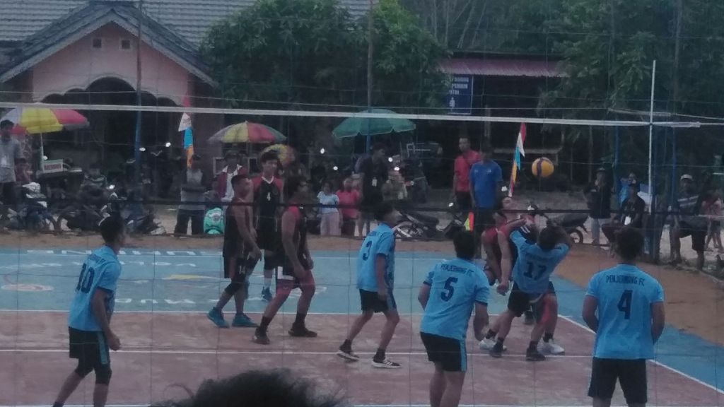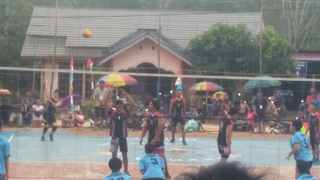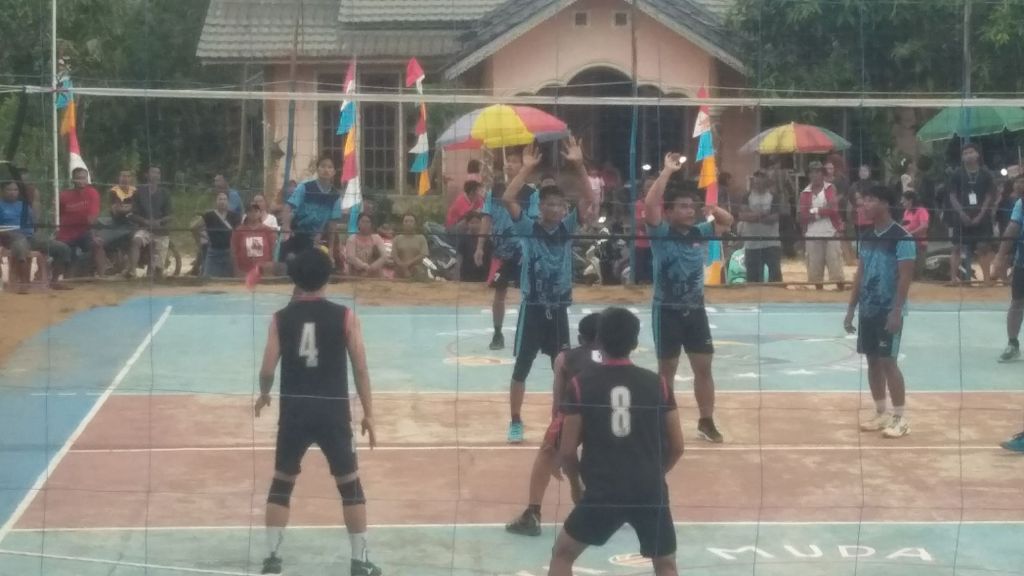 Berandanews24,Kalbar-Melawi,Laga yang penuh keseruan ini semakin menantang di pada laga Tournament Voli Pemuda Cup II Desa guhung,tim Volly Putra antara Gavoda bonet lama vs haikyu penjernang putra.