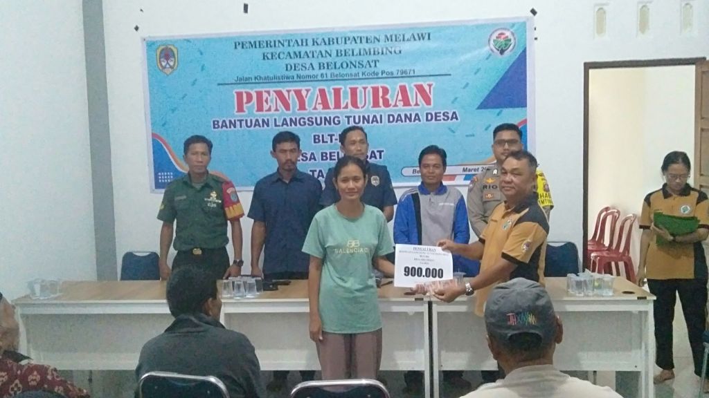 Pemerintah Desa Belonsat,Kecamatan Belimbing,Kabupaten Melawi,Kalimantan Barat menyalurkan Bantuan Langsung Tunai (BLT) Dana Desa tahap satu sebesar Rp900ribu (Januari,Febuari,Maret) Untuk 22 KPM di bertempat Balai desa Belonsat.(8/03/2024)