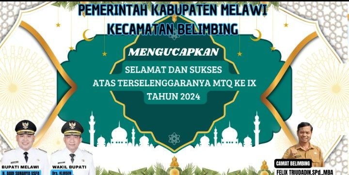 Camat Belimbing Felix Triudadin.Spd. MBA,”Menuturkan Sehubungan dengan akan diselenggarakannya Musabaqoh Tilawatil Qur’an (MTQ) Ke IX se-Kabupaten Melawi tahun 2024,yang pada 20-24 Mei ini, Khafilah Dari Kecamatan Belimbing rencananya akan berangkat menuju Tempat pelaksanaan pada Minggu,18 Mei 2024 Pelepasan Kafilah Kecamatan Belimbing dari Kantor Camat Belimbing,rencananya”tutur Felix Triudadin. Spd. MBA Camat Belimbing”