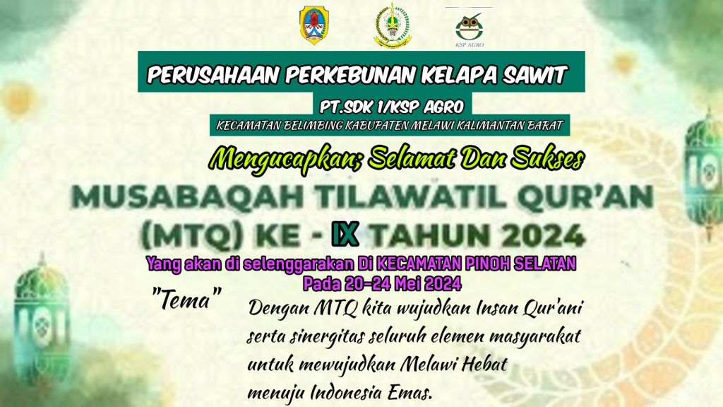 Berandanews24,Melawi-pelaksanaan Musabaqah Tilawatil Quran (MTQ) IX Tingkat Kabupaten Melawi di Kecamatan Pinoh Selatan digelar pada 20-24 Mei mendatang.