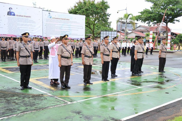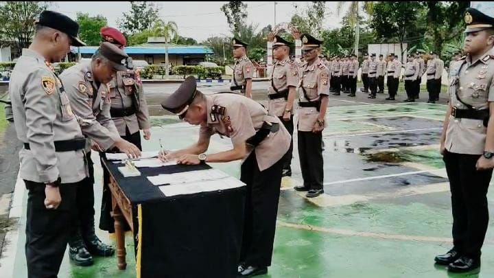Kapolres Melawi AKBP Muhammad Syafi’i, S.I.K., S.H., M.H., memimpin upacara serah terima jabatan Kasat Binmas, Kapolsek Belimbing, Kapolsek Kota Baru, Kapolsek Sokan, dan Kapolsek Menukung di lapangan apel Polres Melawi, Sabtu (25/5).