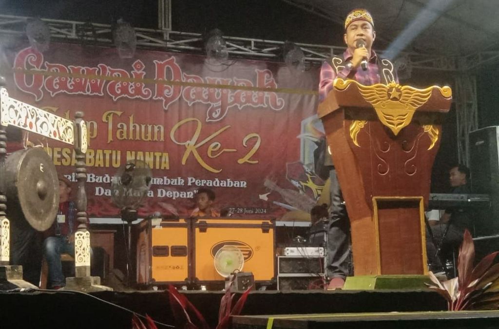 yang didampingi Kepala desa Petrus Bujang,Kapolsek Belimbing IPTU Samuji,Ketua Panitia Edi Irwansah SE,serta tokoh tokoh masyarakat dan Seluruh Jajarannya panitia pelaksanaan Gawai Dayak Ke-2 Desa Batu Nanta tahun 2024.