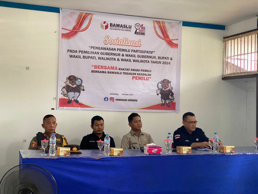 Sementara itu Agustius Ketua PPK Belimbing menghadiri kegiatan sosialisasi pengawasan partisipatif pada pemilihan Gubernur dan wakil Gubernur dan pemilihan Bupati dan wakil Bupati tahun 2024.