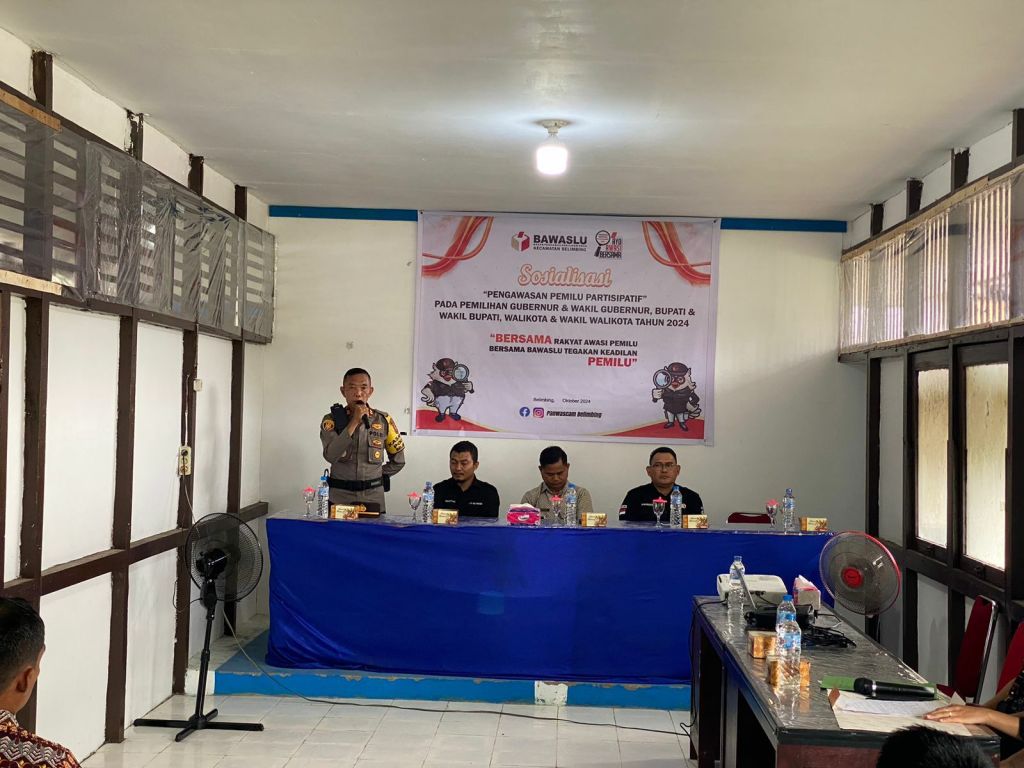Kapolsek Belimbing bapak Iptu SAMUJI oleh, menyampaikan materi yang menitikberatkan tugas pokok Polri dalam pengawasan Pilkada serentak tahun 2024 sebagai Satgas GAKUMDU Pilkada 2024, dalam pengawasan pilkada serentak ini kami dari polri juga mengharapkan kerja sama kita semua terutama masyarakat agar lebih aktif dalam pengawasan pilkada untuk menghidari pemilu yang tidak sehat seperti praktek money politic black campaign dan membuat kericuhan,”Kemudian Kapolsek Belimbing melanjutkan”,