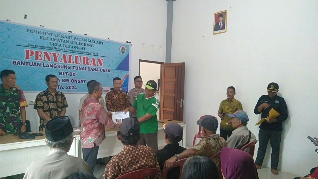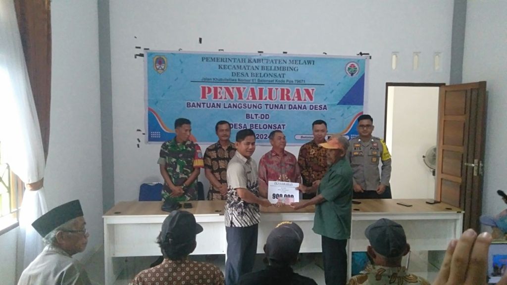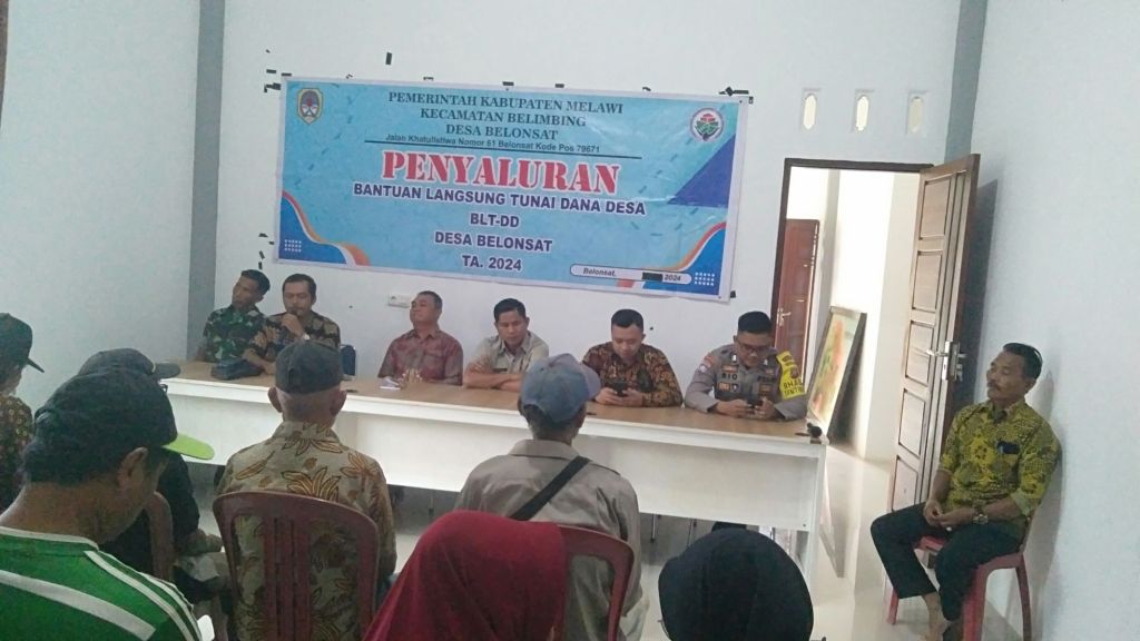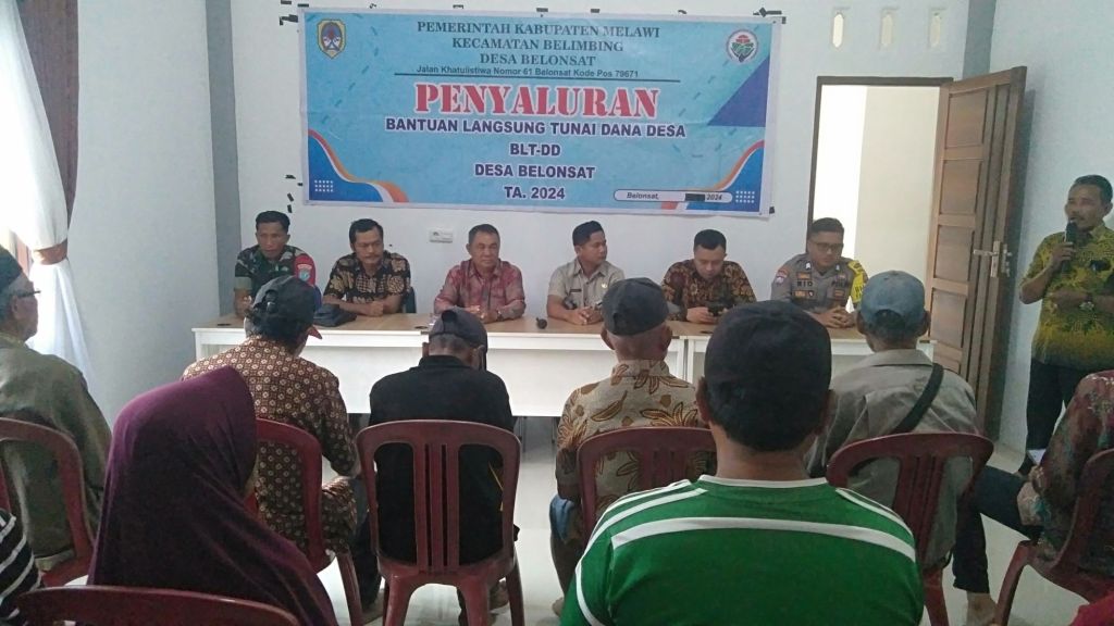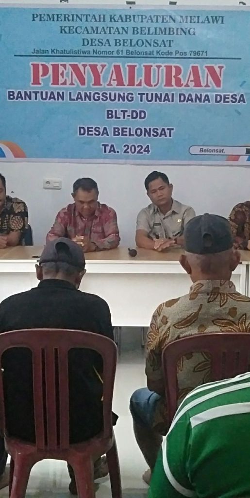 Bearandanews24,Kalbar,Melawi-Pelaksanaan Penyaluran BLT-DD Tahap Akhir TA 2024 Yang di hadiri oleh Kepala Desa,Ketua BPD,Pendaping Desa,Pendamping Lokal,Babinsa 1205/16Pemuar,Bhabinkhatimas Polsek Belimbing,Pemerintah Kecamatan Belimbing serta KPM 22 warga Belonsat.