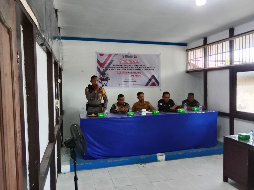 Bhabinkamtibmas Babainsa desa idas, menyampaikan materi yang menitikberatkan tugas pokok Polri dalam pengawasan Pilkada serentak tahun 2024 sebagai Satgas gakum Pilkada 2024,