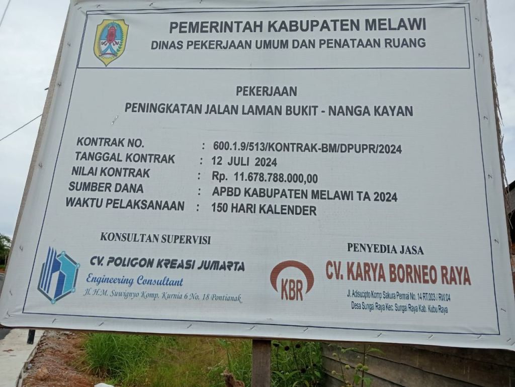 Yang Pelaksana CV.Karya Borneo Raya Jalan .Adisucipto, Komp.Sakura Permai No.14 RT.003/RW.04 Desa Sungai Raya, Kecamatan Sungai Raya, Kabupaten Kubu Raya (KKR).