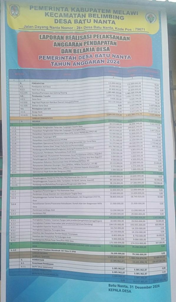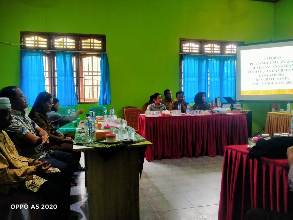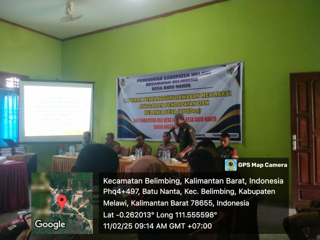 serta penetapan KPM BLT-DD TA 2025 yang dihadiri FORKOPIMCAM dan Tokoh Agama,Masyarakat serta Tenaga Ahli Kabupaten Melawi,LPJ APBDes,yang di sampaikan Bendahara Desa Bt.nanta yang bersifat Transparasi/info publik dari Pemdes Batu nanta.
