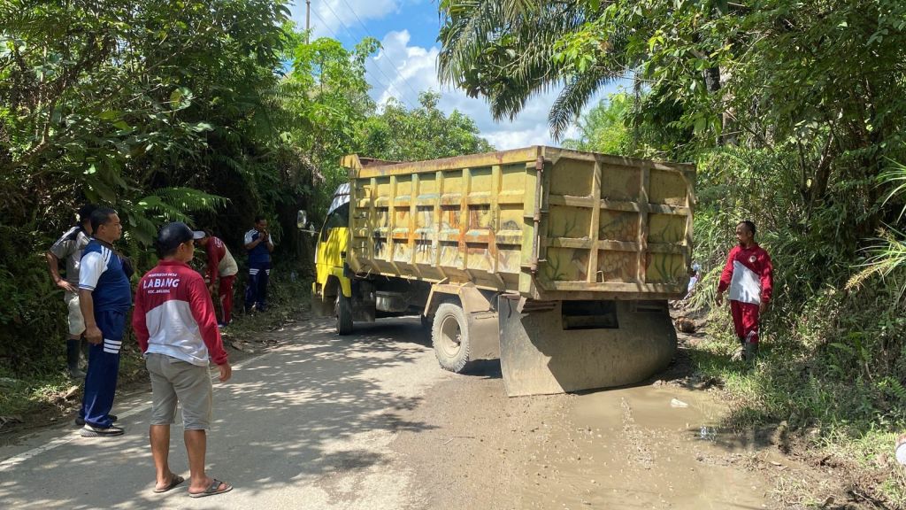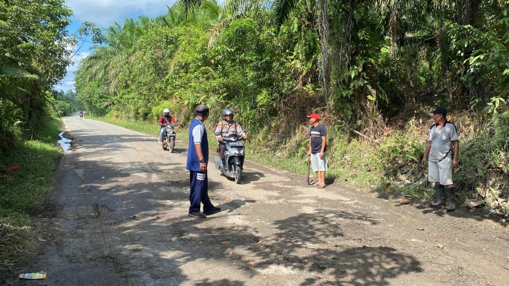 Berandanews24,Melawi-Menjelang HUT Bhayangkara ke 79,hari Jum,at 13 Juni 2025.Polsek Belimbing berklobrasi dengan kadus Labang(Hendro) bersama warganya Bersama sama gotong royong memperbaiki jalan yang berlobang, guna antisipasi kecelakaan untuk pengguna jalan raya yang terletak di Dusun Labang