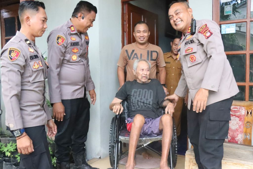 Setibanya di rumah Bapak Joko, suasana haru langsung terasa. Wajah Bapak Joko memancarkan rasa kaget sekaligus bahagia saat menerima bantuan kursi roda dari Kapolres. Duduk di kursi kayu tua yang selama ini menjadi tempatnya beristirahat, ia tak menyangka akan mendapatkan perhatian langsung dari jajaran kepolisian.
