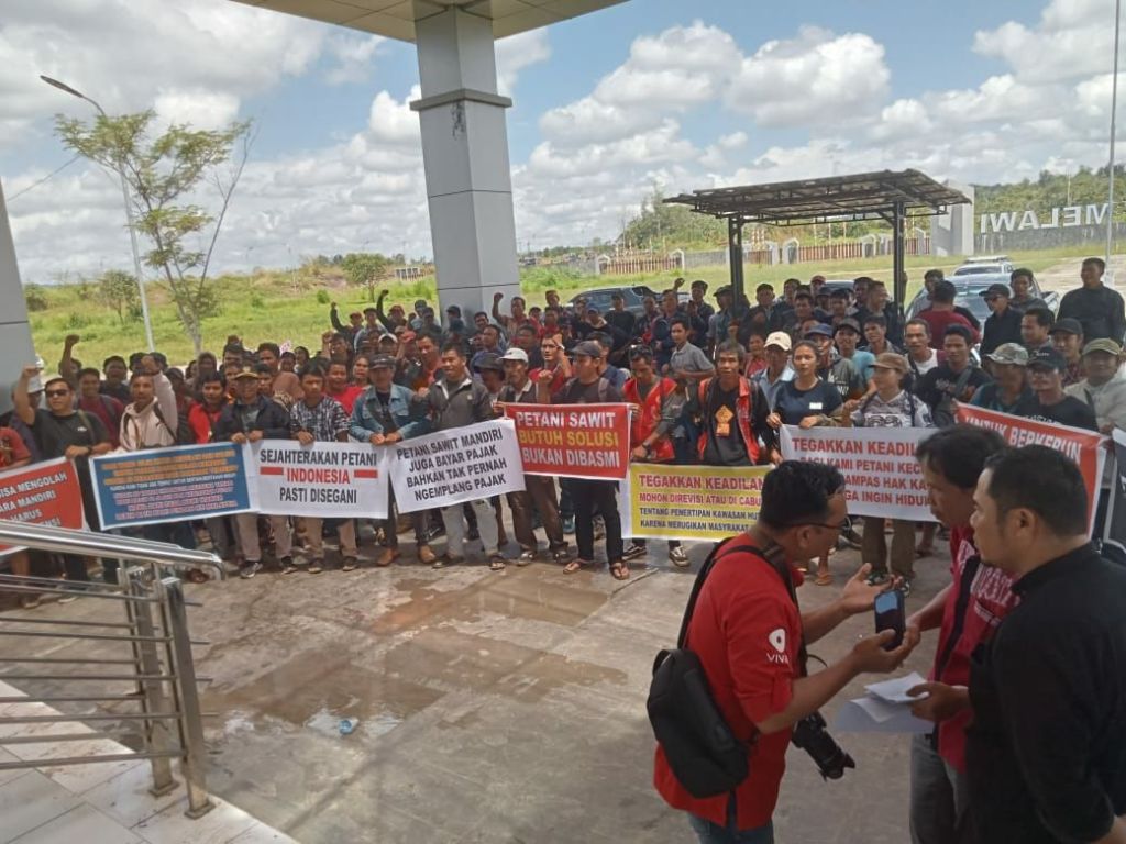 Melawi, Kalbar– Ratusan warga masyarakat para petani sawit mandiri yang tergabung dari Kecamatan Ela dan Kecamatan Pinoh Selatan Kabupaten Melawi gelar audensi serta berorasi di halaman Kantor Bupati Melawi,