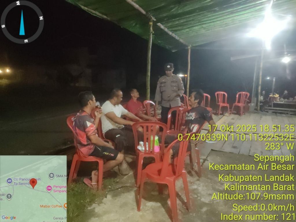 BerandaNews24,Polsek Air Besar ~ Polres Jaga Stabilitas Kamtibmas, Polsek Air Besar Laksanakan Patroli Dialogis di Desa Sepangah dan SerimbuLandak ~ Polda Kalbar ~ Dalam rangka menjaga situasi kamtibmas tetap aman dan kondusif, jajaran Polsek Air Besar melaksanakan patroli malam dialogis di wilayah hukumnya pada Jum’at malam (17/10/2025).Kegiatan tersebut menyasar sejumlah titik strategis di Desa Sepangah dan Serimbu, Kecamatan Air Besar, Kabupaten Landak, Kalimantan Barat.