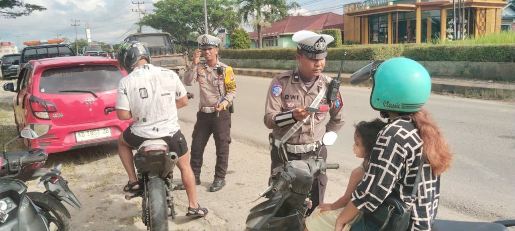 Polres Melawi Polda Kalbar – Dalam rangka menegakkan disiplin lalu lintas dan mencegah kecelakaan lalu lintas, Satgas Ops Zebra Kapuas Polres Melawi kembali melakukan kegiatan gabungan bersama beberapa instansi terkait. Kegiatan ini dilaksanakan di Jalan Juang KM 2, Kabupaten Melawi, Jumat (28/11/2025).