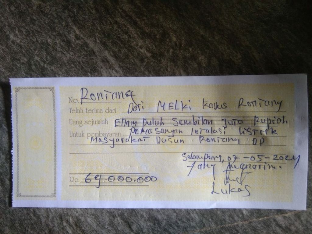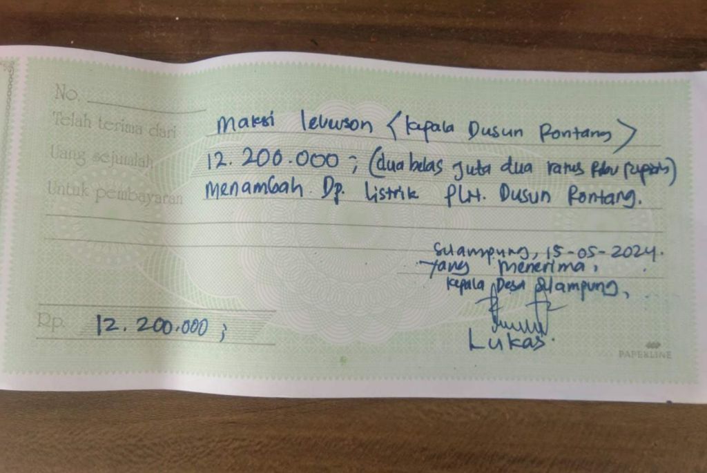 Ia melanjutkan, “Anggaran 2024 untuk Dusun Sonau tidak masuk link resmi, tapi kami minta bantuan kawan sehingga dialihkan ke sini,Kami pernah usulkan ke PLN karena keterbatasan anggaran, mudah-mudahan tahun berikutnya ada”,